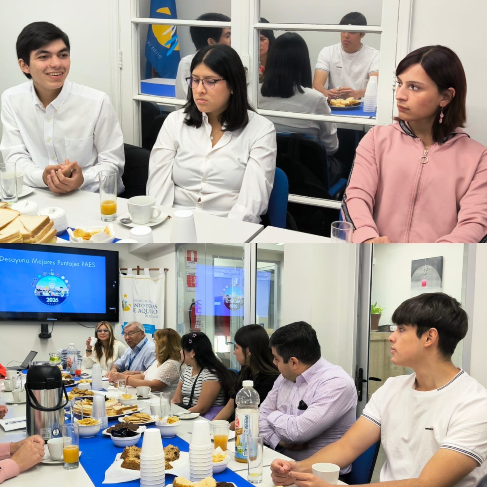 Con especial afecto, la Red Santo Tomás de Aquino agradeció el compromiso de Matías Berrocal (Puntaje Nacional M1 del Liceo Miguel Rafael Prado), Emily Ávila (Liceo José Domingo Cañas), Eva Sandoval (Liceo Bicentenario San Francisco), Benjamín Peña (Liceo Bicentenario Monseñor Luis Arturo Pérez), Alexandra Rojas (Liceo Sara Blinder), Agustina Fajardo y Jeovany Manzo (ambos Puntaje Nacional M1 del Colegio Santa Marta), y Alejandra Murillo (Puntaje Nacional M1 del Colegio San Alberto Hurtado).